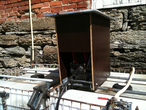 I disse tider har et nytt bygg blitt ferdigstilt på gården: Et bitte lite minihus, som huser slangetrommelen. En liten innretning som skal beskytte mot vær og vind, og kanskje forlenge levetiden noe. Kanskje ikke noen arkitektonisk perle, men praktisk og funksjonelt. En ekte Skagnæs-løsning!